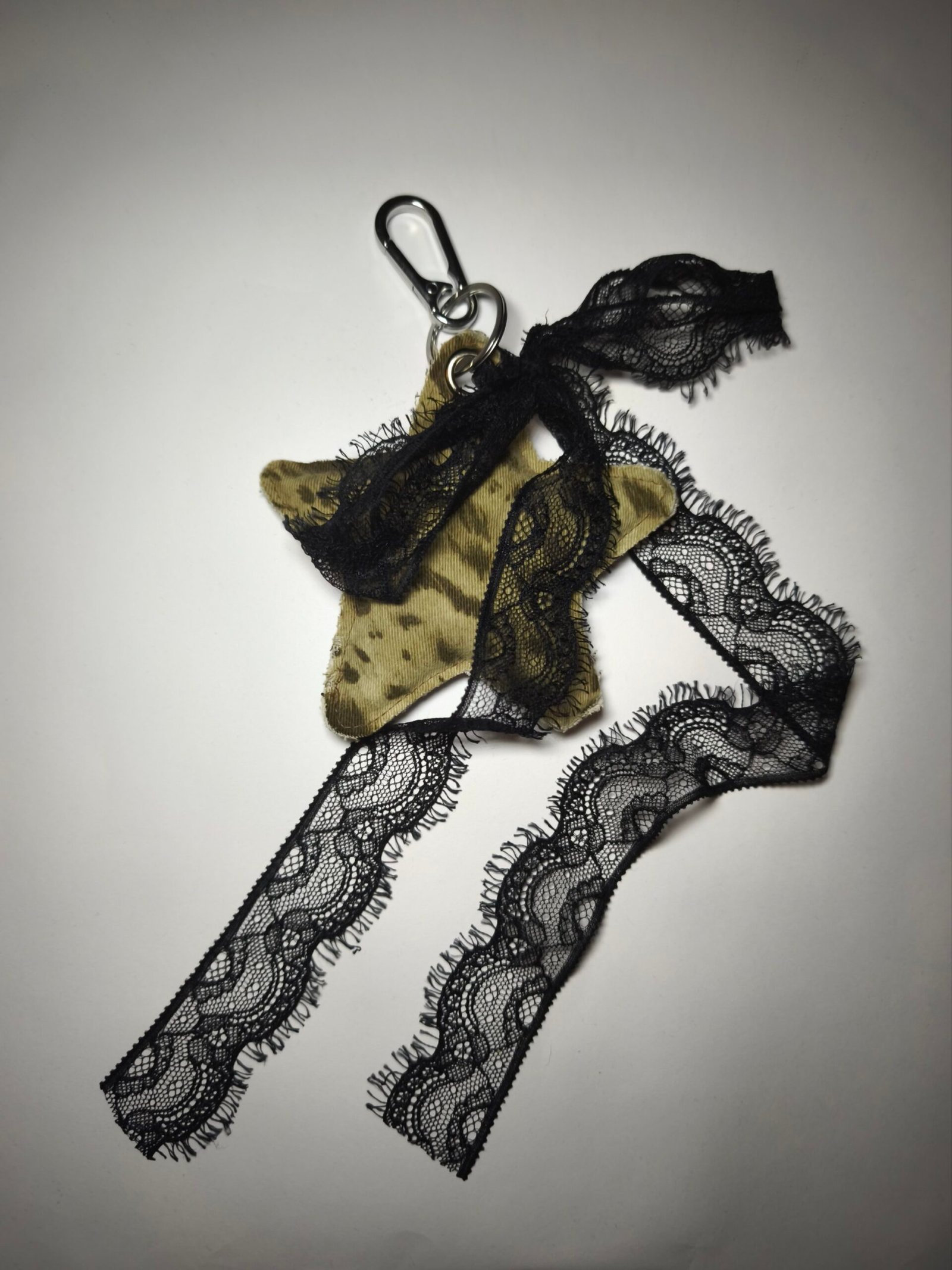 Charme en forme d’étoile en léopard avec noeud en dentelle noir