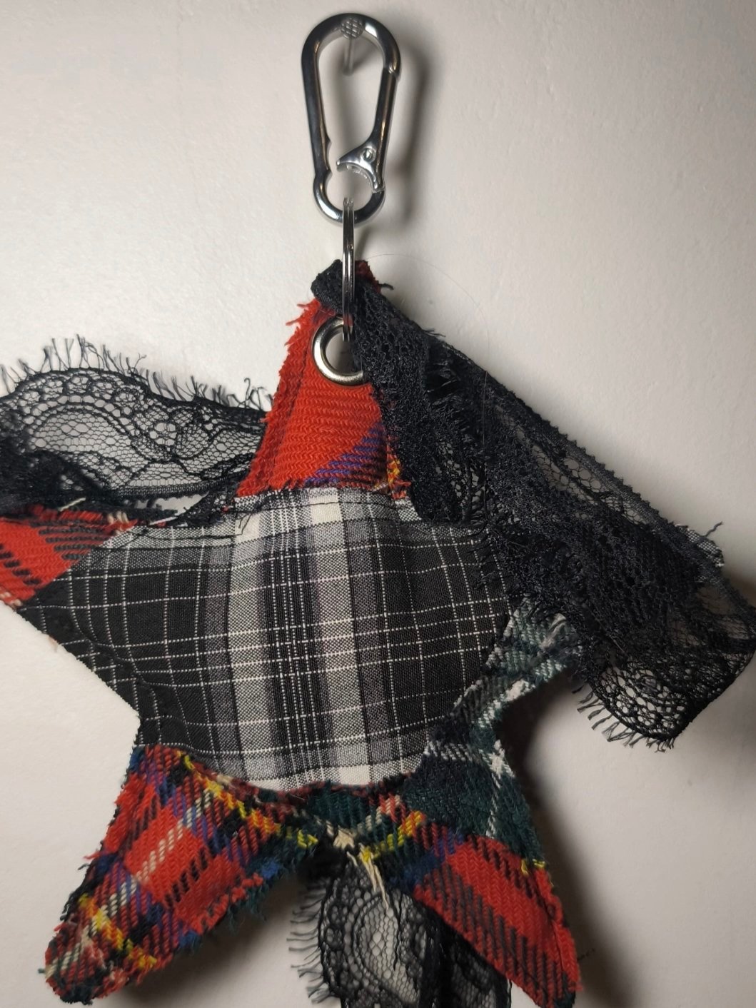 Etoile en patchwork tartan avec noeud en dentelle noir