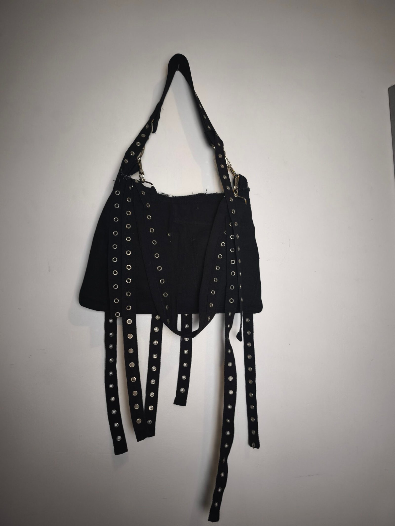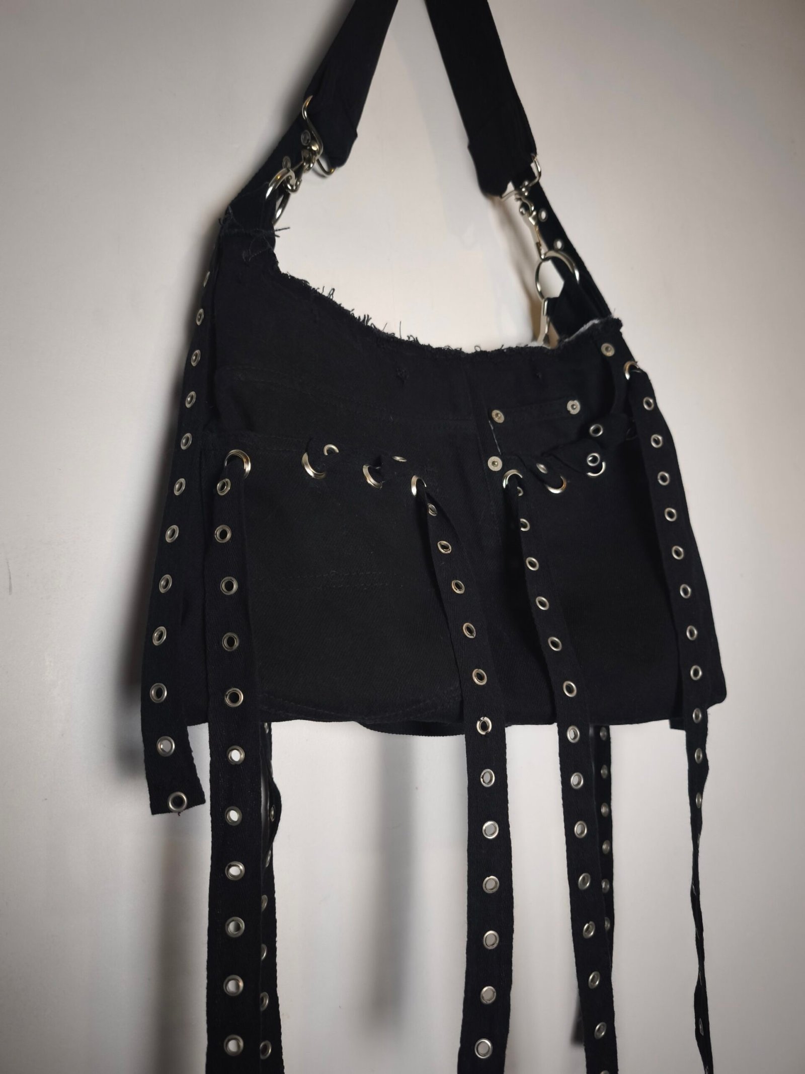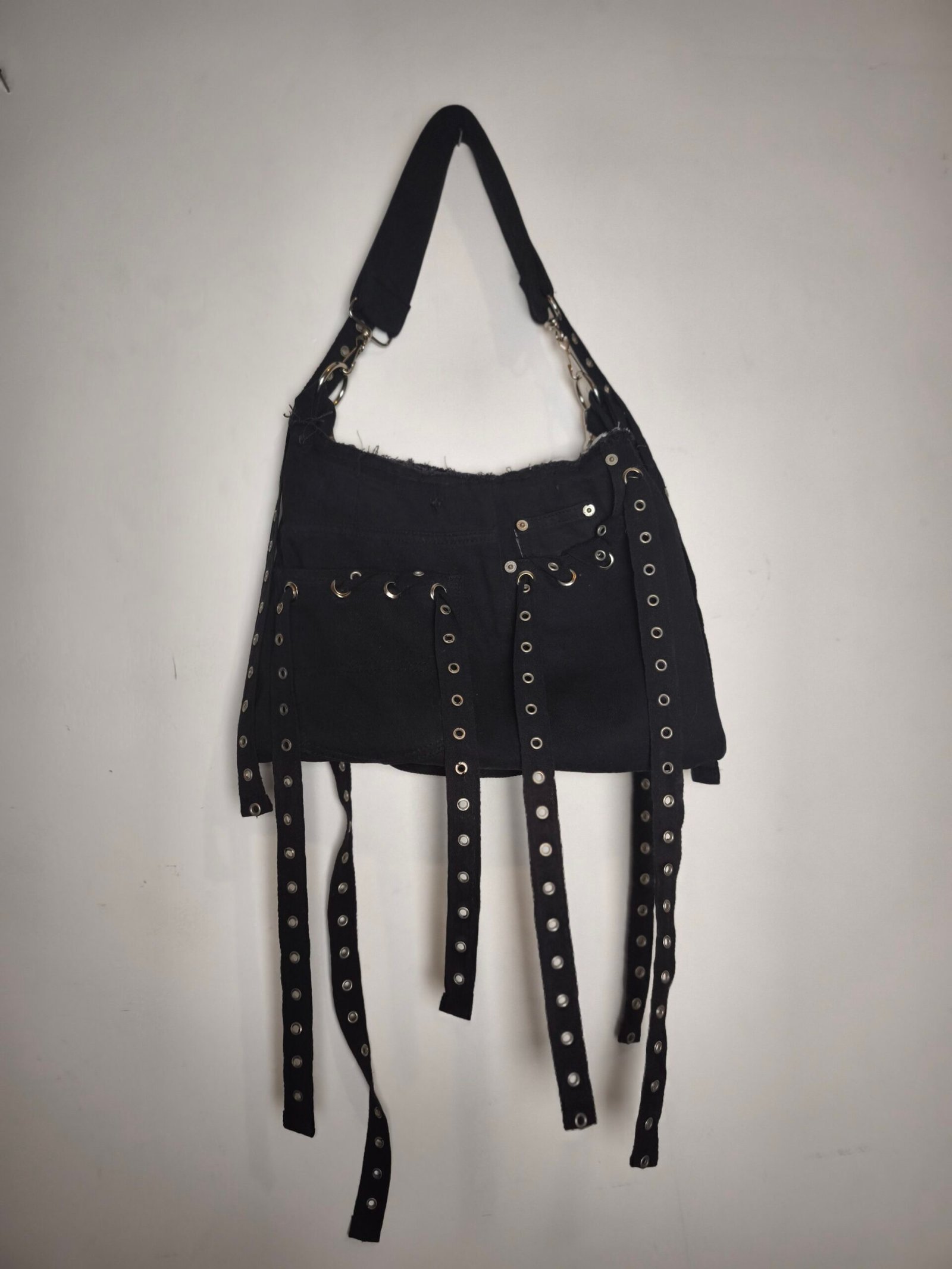 Sac en jean noir avec bandes noires d’oeillets