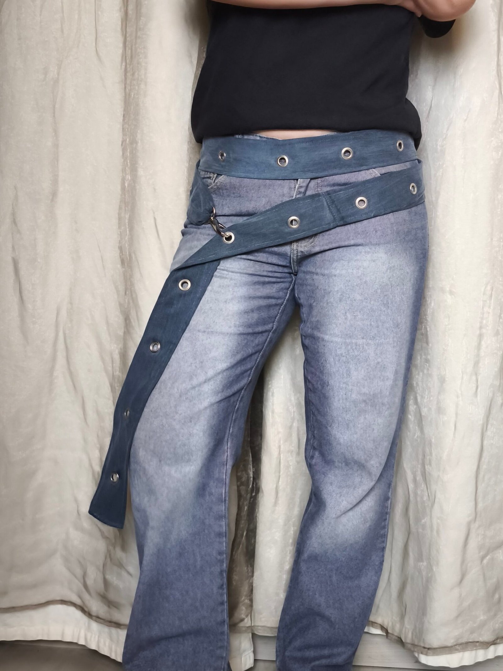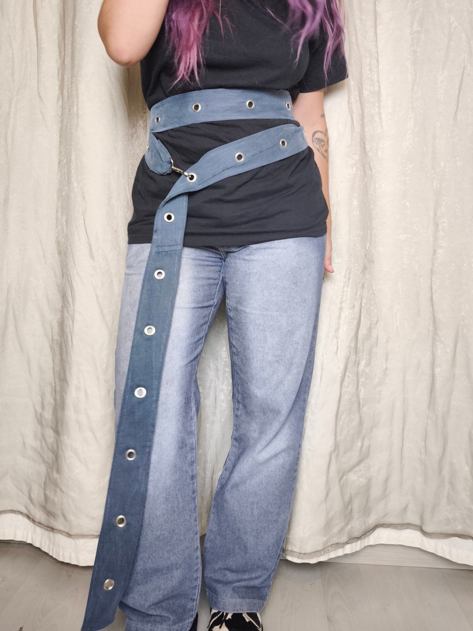 ceinture bleu double avec oeillets et attache type mousqueton